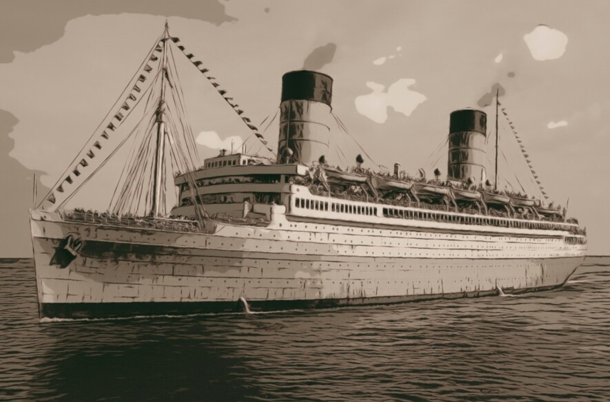 Le voyage sur le paquebot Queen Mary avait duré une grosse semaine sur une mer houleuse. Illustration : Dallaire Production