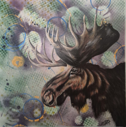 Bill the moose, toile acrylique et peinture aérosol (24”x24”) de Marie-Pier Dubé.