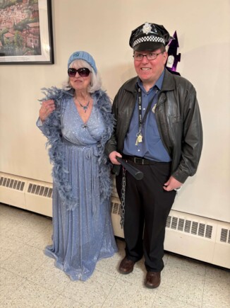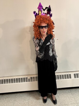 Nathalie Morin, la doyenne de la soirée, a aussi gagné le prix du plus beau costume. Photo : Courtoisie – DClic