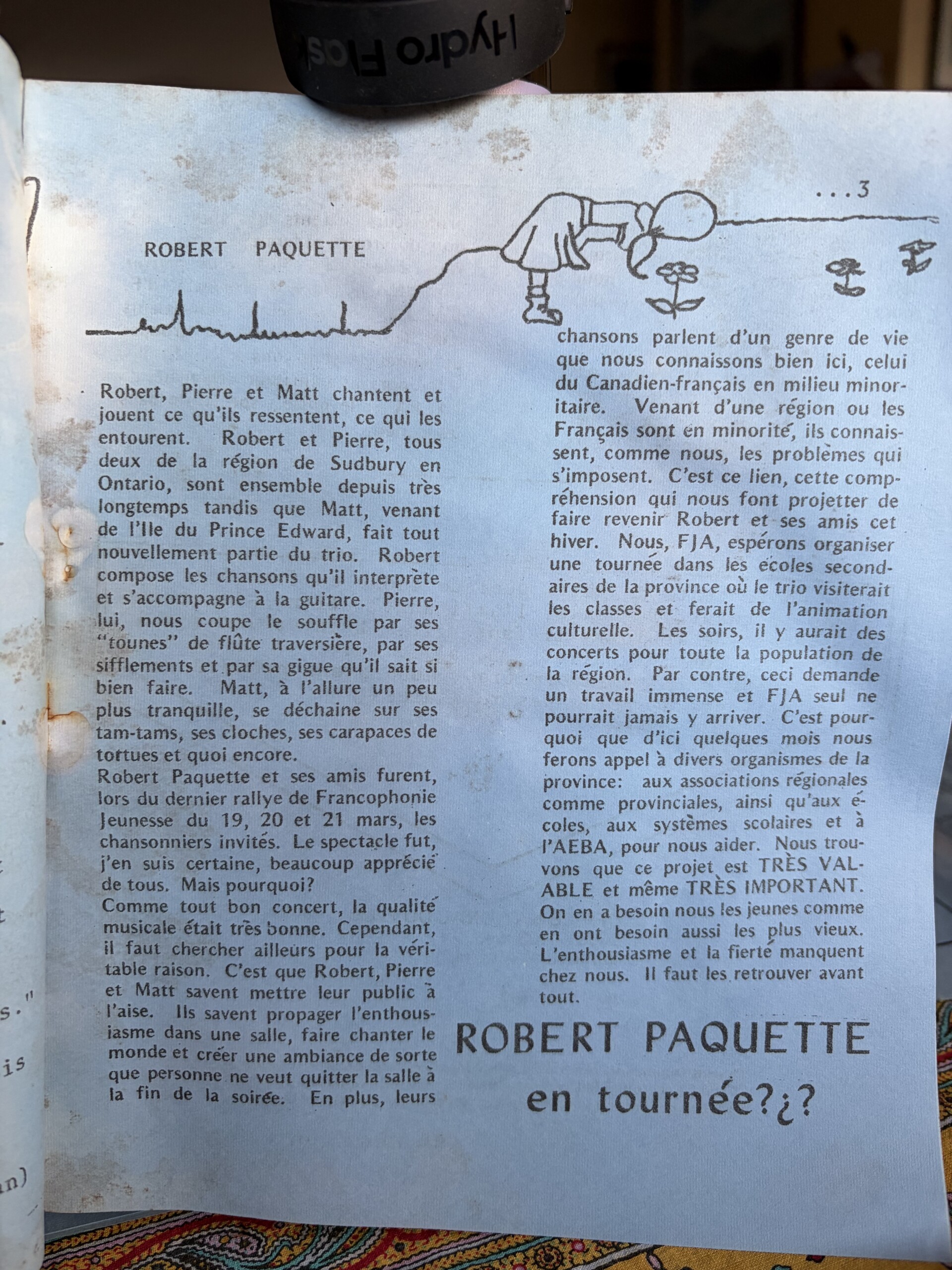 À 18 ans, Paulette s’investit déjà dans la Francophonie jeunesse de l’Alberta (FJA). Avec une poignée d’amis, elle a façonné le journal Le Cran et bien d’autres projets culturels. Entre recettes et chroniques musicales, tout se faisait à la main, avec une rigueur artisanale qui forge son leadership.